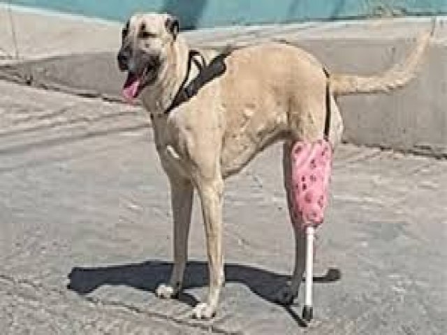 Uma cadela resgatada voltou a caminhar com o auxílio de uma prótese improvisada, feita com materiais simples como garrafa plástica e cabo de vassoura. O equipamento foi desenvolvido pela própria família adotiva após a amputação de uma das patas traseiras.
